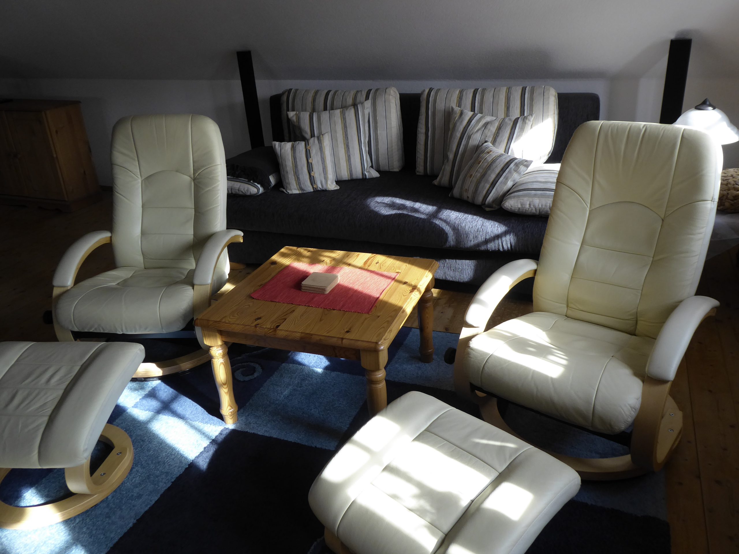 Eine gepflegte, komfortable eingerichtete Ferienwohnung mit 75 m² Wohnfläche, die keine Wünsche offen lässt. Die Wohnung besteht aus einem Schlafzimmer mit Doppelbett, Kommode und Schrank. Das moderne Bad verfügt über eine Eckbadewanne, einer Dusche, zwei Waschbecken, WC und Fenster zum Garten. Im großzügigen Wohn- und Essbereich werden Sie das offene Gebälk und die Ausstattung begeistern. Ob auf dem großen Schlafsofa oder den hochwertigen Relaxsesseln, hier findet jeder sein gemütliches Plätzchen. Der Wohnbereich verfügt über einen 43" UHD Fernseher, Blu-Ray-Player, Dolby Surround-Anlage sowie Radio- und CD-Player. Die Küche beinhaltet einen Essplatz für 6 Personen, 4 Plattenherd, Backofen und Mikrowelle bestens ausgestattet. Die Wohnung verfügt über genügend Stauraum in Kommoden und Schränken, sodass einem längerer Aufenthalt nichts im Weg steht.